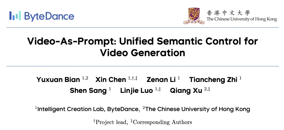 论文标题:Video-As-Prompt: Unified Semantic Control for Video Generation