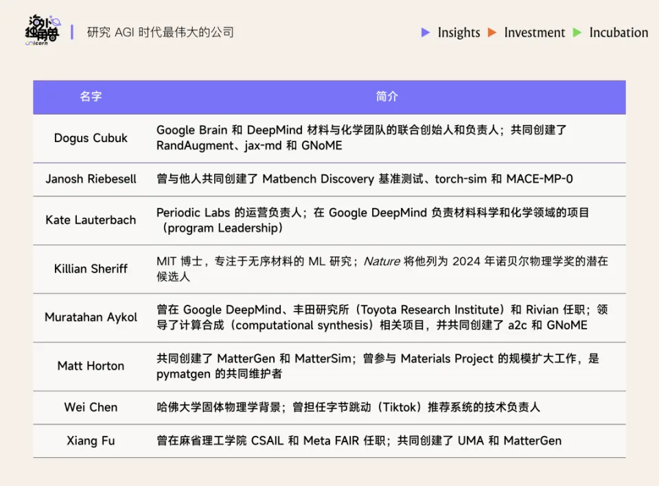 目前,Periodic Labs 团队总共约有 30 人。对于研究人员来说,Periodic Labs 研究人员的特质与 OpenAI、Anthropic、DeepMind 等前沿 AI 实验室高度相似,但团队认为,最关键的区别在于:他们是否真正认同“加速科学”这一使命。根据目前公开的信息,Periodic Labs 研究人员情况具体如下: