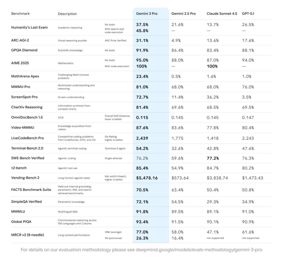 1. Gemini 3 Pro在基准测试中的卓越表现