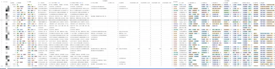 看过我之前那篇飞书多维表格教程的朋友应该还记得,当时我们有一张非常非常长的博主信息全表,我刚刚查了一下,总共有100多个字段。