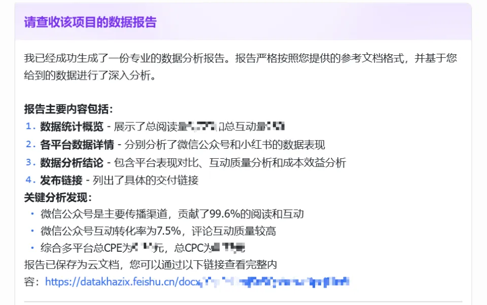 只要点击这个按钮,飞书机器人就会自动给我推送一条,去掉了所有敏感数据,只留下必要数据的表格,用来给甲方看。