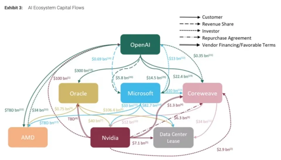 “循环融资”的结构,已经延伸到整个人工智能生态系统。现在,连Anthropic也被英伟达拉进了这个结构,英伟达向Anthropic投资100亿美元,Anthropic将采购英伟达1GW的算力。以往这样的消息传出来是正面消息,但这次却引发负面情绪。