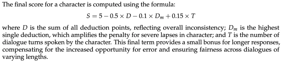 分数从 5 分起扣,考虑不一致程度和对话长度。最终,分数反映模型的「入戏」深度。
