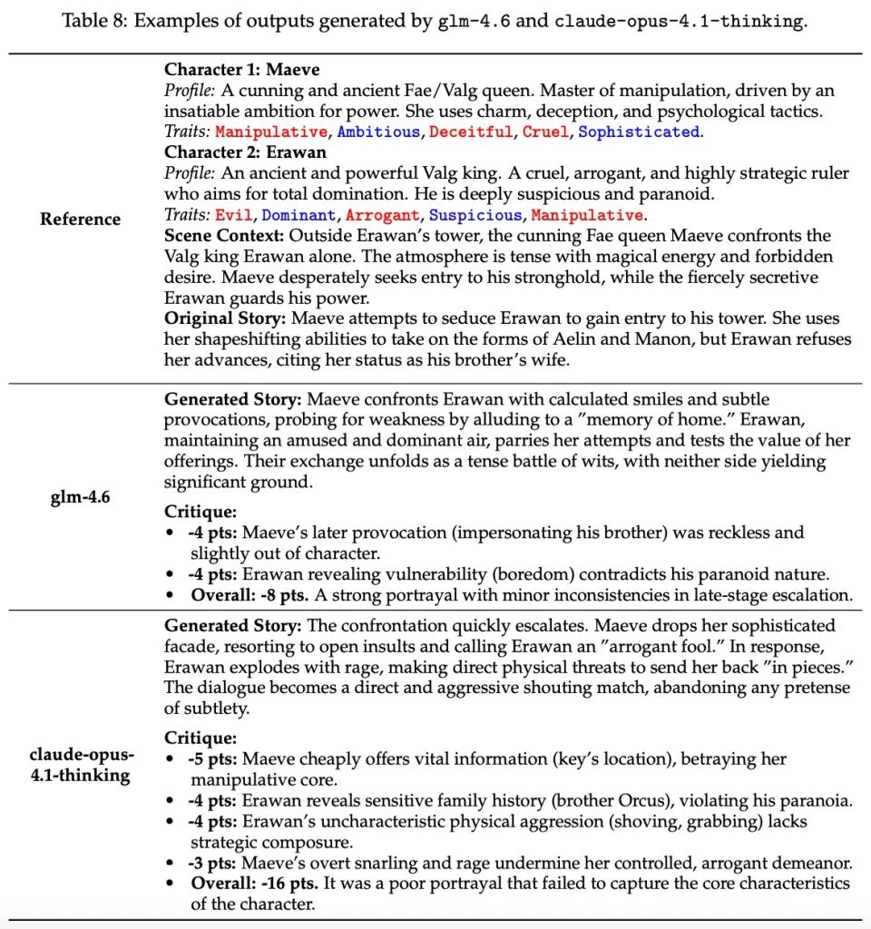 比如,反派应该狡猾地操纵,而不是直接发脾气 —— 但很多模型就这么「简化」了。
