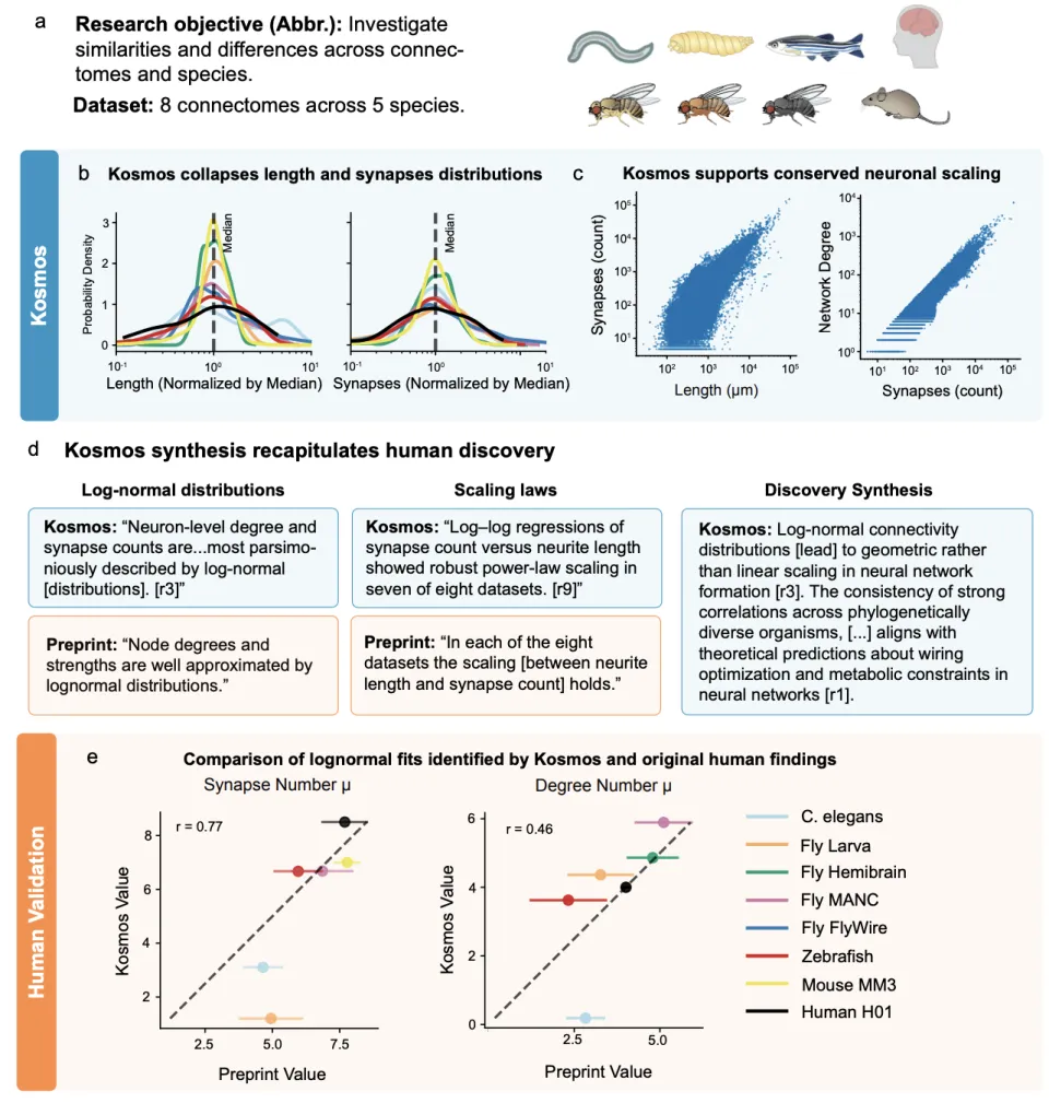 第三项发现:Kosmos与Piazza等人研究报告中得出的结论一致——跨物种的神经元连接模式可由一套通用数学规则描述。