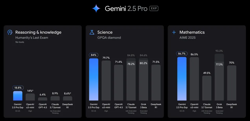 2025年3月25日,Gemini 2.5以Pro Experimental首秀。
