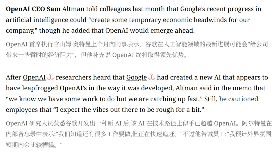 就连奥特曼都在全员信中承认,谷歌已经「反超」。