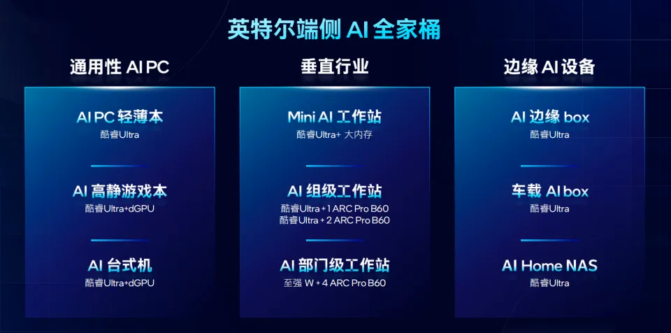 在产品布局上,英特尔覆盖全价位市场:8000 元以下机型配备 64GB 内存,以轻薄机身满足专业创作与日常使用需求;万元以上高端机型则提供 96GB-128GB 内存选项,赋能 Mini PC、Mini AI 工作站等形态产品,让开发者无需依赖云端即可完成复杂模型的本地推理与训练,加速技术落地进程。