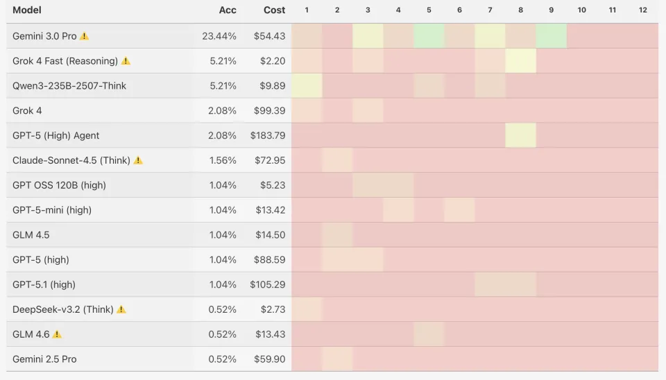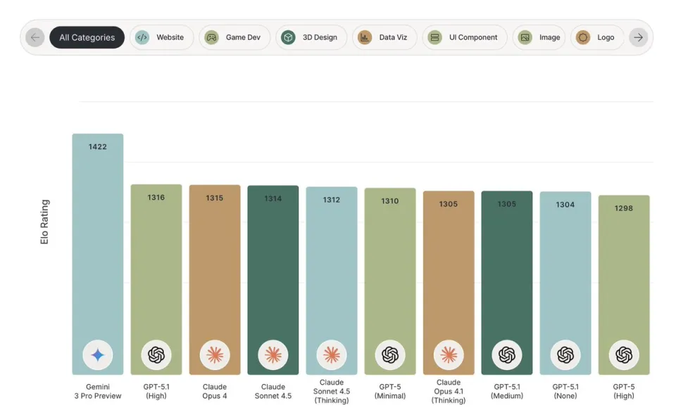 但Gemini 3的出现,把原本胶着的战争直接变成了断层式的碾压。