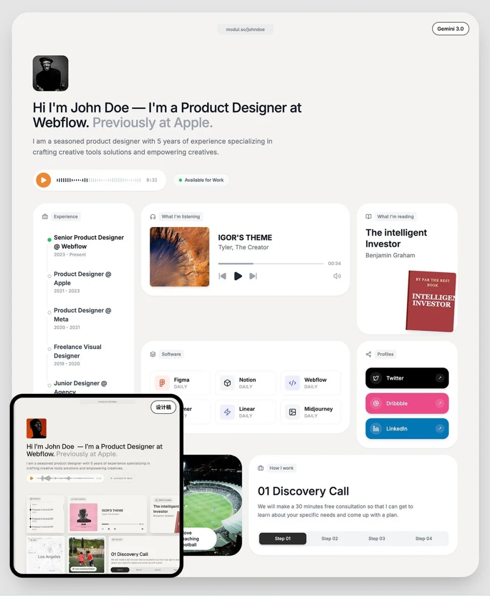 这种审美智能的来源部分是训练数据。根据Gemini 3的Model Card披露,Gemini 3的训练数据包括大量的图像、视频和网页数据,这说明模型不仅学会了如何编码,还学会了什么样的界面是好看的,布局优质的。