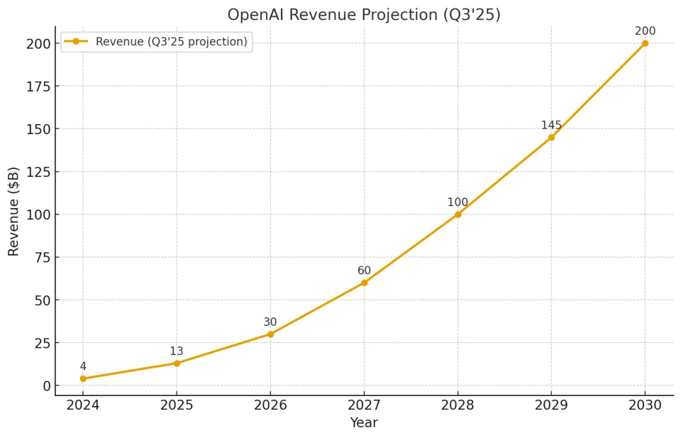3.大模型企业的增长斜率足够高,对芯片供应的需求持续提升。从收入来看,以OpenAI和Anthropic为代表的美国企业在个人用户和企业用户两端均已实现可观收入。如预计今年底OpenAI的年化收入将超过200亿美元,比之前预测的130亿美元大幅增长,相比去年的40亿美元更是增长5倍,并计划到2030年增长至数千亿美元。