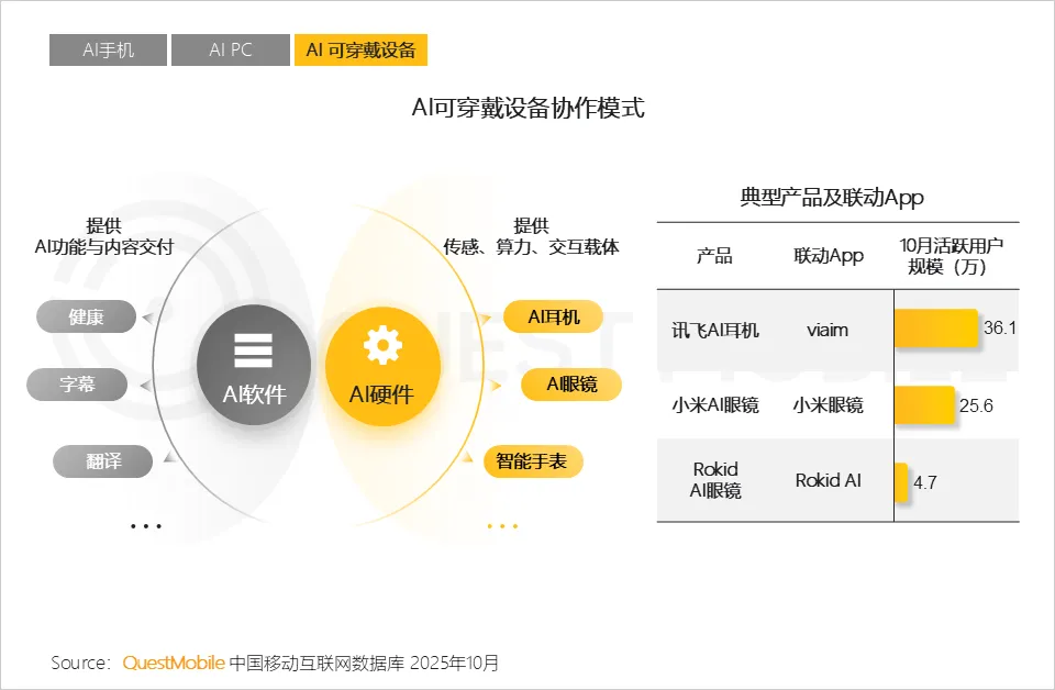 QuestMobile数据显示,2025年10月,智能穿戴类App活跃用户规模达1.59亿,同比增长12.8%。