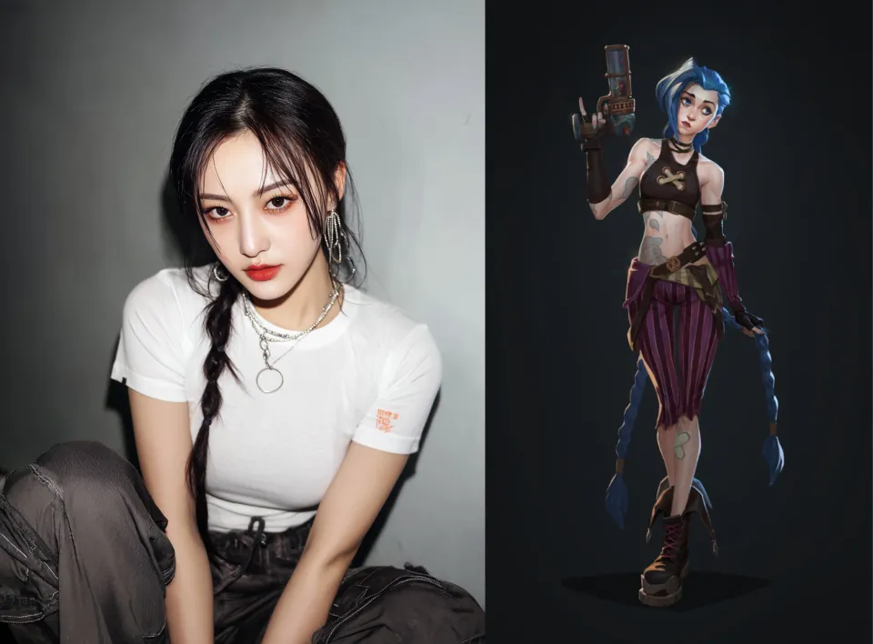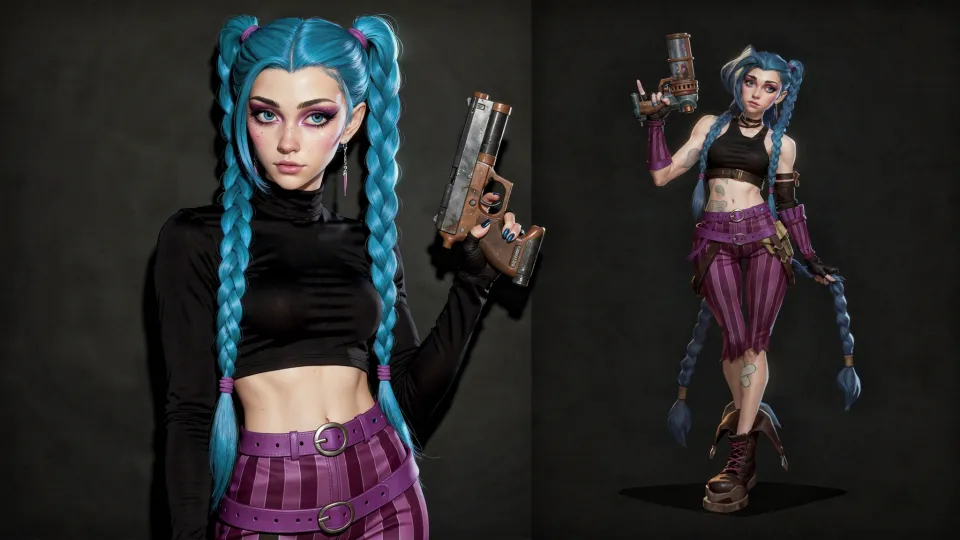 整体还不错对吧,衣服头发辫子啥的都很好的还原了金克丝。