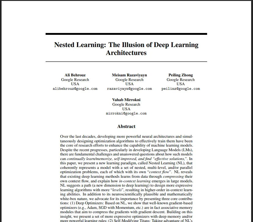 《Nested Learning: The Illusion of Deep Learning Architectures》
