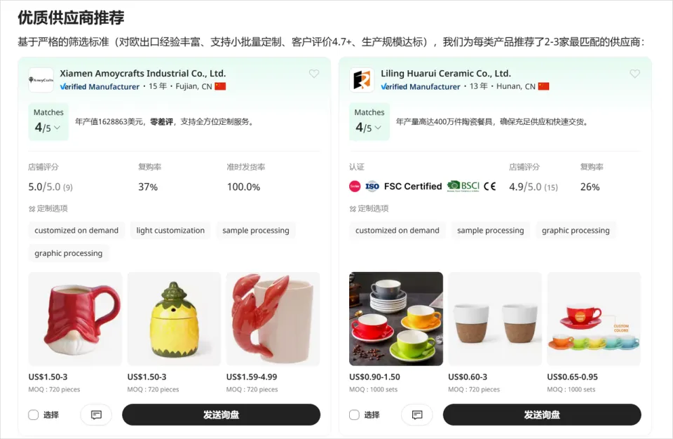 接下来呢,它还会根据这些礼品,给我寻找靠谱的工厂。