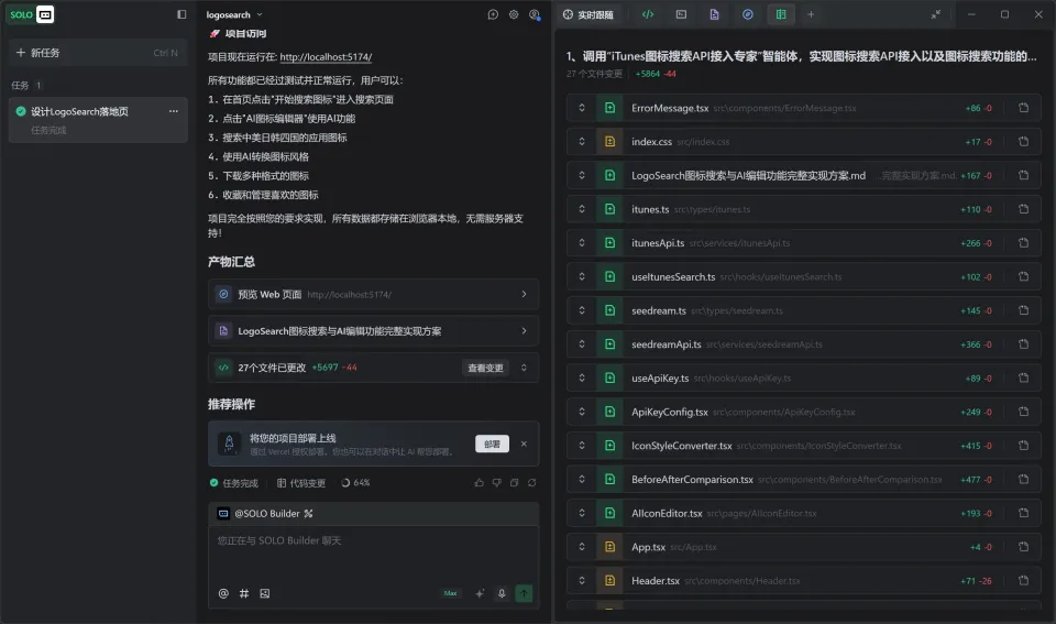 如果说SOLO Builder更适合从0到1,那SOLO Coder,更适合完成从1到100的迭代。