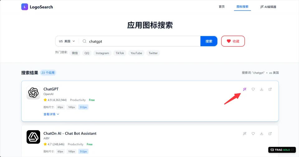 1、调用“iTunes图标搜索API接入专家”智能体,实现图标搜索API接入以及图标搜索功能的实现,支持搜索中国,美国,日本,韩国区域的应用。2、调用“火山引擎Seedream接入专家”智能体,接入seedream 4模型,增加AI修改功能,支持图标风格转换,添加AI处理前后对比视图。APIKEY用户在页面填写,保存在浏览器本地。3、实现不同格式下载,PNG、JPEG、Web、icon等,包含下载进度显示与完成通知4、实现收藏夹功能,数据存在浏览器本地,不需要账号同步、登录等功能。