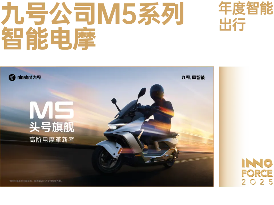 九号公司是一家专注于创新短途交通和机器人的科技公司。M5 系列是九号在 2025 年 8 月发布的一系列智能电摩。该系列不仅在续航、性能等传统指标上表现优异,更是为用户带来了独特的个性化与智能化骑行体验。
