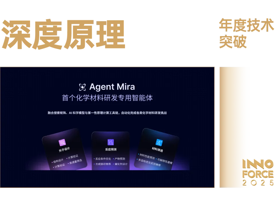 深度原理的技术创新,是真正将 AI 用于最基础的科学发现。他们通过 AI 决策链,将机器学习、量子化学计算和高通量实验整合成一个闭环。这套系统不仅能千倍速地加速研发,更重要的是,它能以前所未有的精度,在庞大的材料空间中定位最有潜力的候选者,并指引实验的方向。