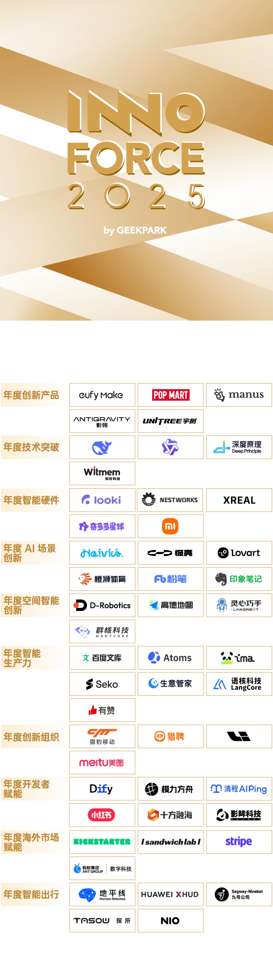 探索·向上!极客公园 2025 年度「InnoForce 50」发布