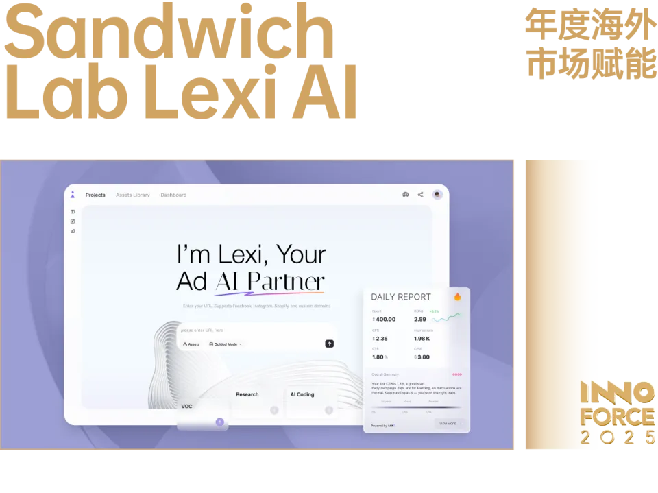 2025 年初推出的 Lexi AI (lexi.studio),以自研的 Evolion 引擎为核心——这是一套具备自我进化机制的智能决策系统,能够在海量投放数据与多模态商业信号中持续学习与优化,在动态市场中自主理解素材、文案、受众与行为等非结构化数据,并生成更高效的策略路径。这一突破标志着 AI 从「生成内容」迈向「生成结果」的新征程。