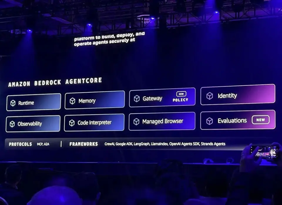 Amazon Bedrock AgentCore智能体平台推出多项创新:策略功能支持团队为智能体的工具使用设定边界,评估功能帮助团队了解智能体在实际场景中的表现,情景记忆功能让智能体能够从经验中学习并持续优化。
