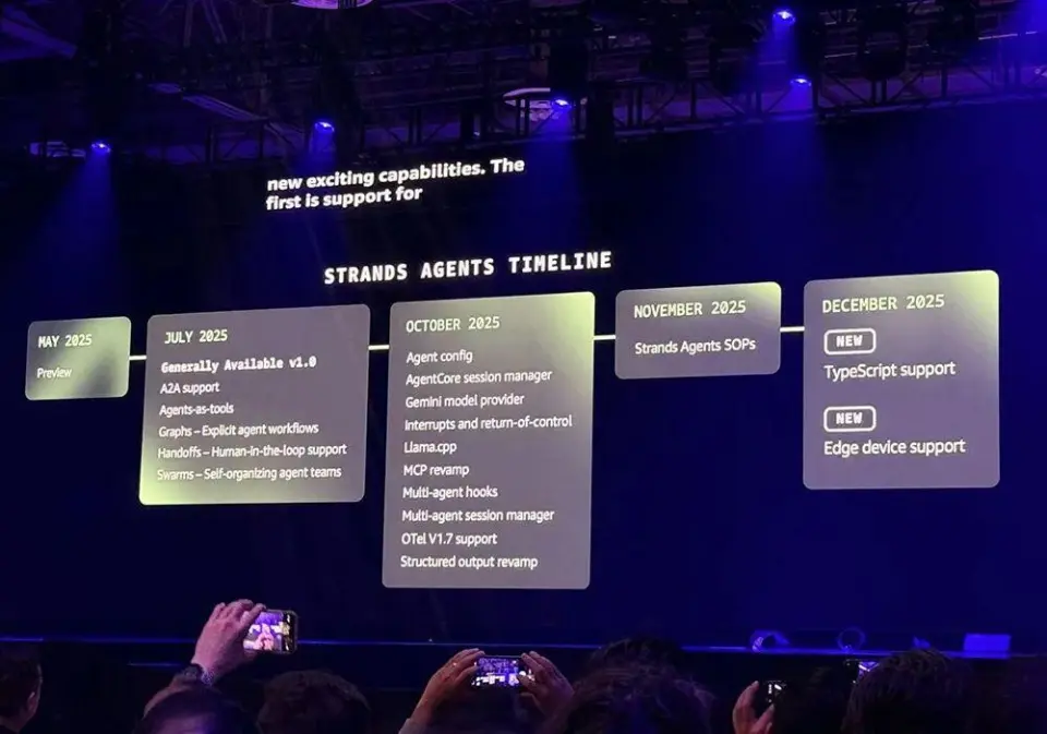 Strands Agents SDK智能体框架新增对TypeScript和边缘设备的支持,让智能体构建更轻松,并拓展至更广泛的汽车、游戏、机器人等边缘领域。