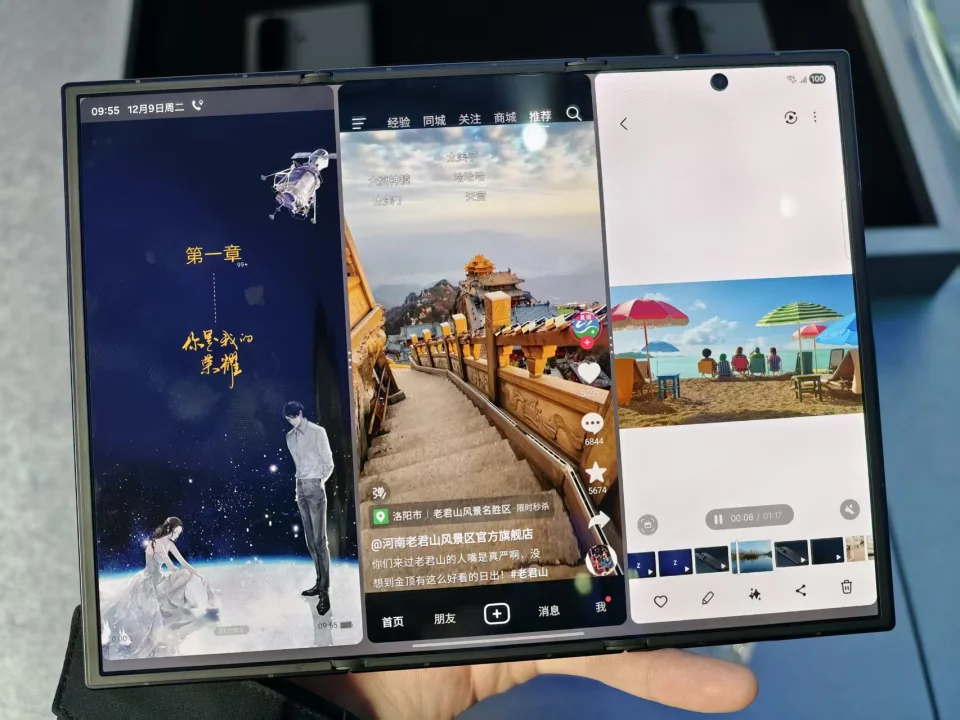 今天,三星G型三折叠无疑是一次大胆又谨慎的尝试,在国内厂商发布一年多后,三星“姗姗来迟”,我们看到三星在工艺方面的严格要求、出色的整机质感背后,是面向全球发售所必须要具备的严谨。同时,在应用交互层面的创新、高完成度也成为三星三折叠的重要优势体验。