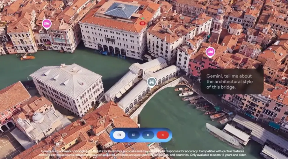 今年10月,谷歌和三星联手推出了Galaxy XR,这是首款由安卓XR驱动的设备,具备高分辨率、多模态AI输入,并内置由Gemini驱动的AI功能。比如,用户可以在XR世界里沉浸式体验谷歌地图里的街景,然后召唤出Gemini询问更多信息。