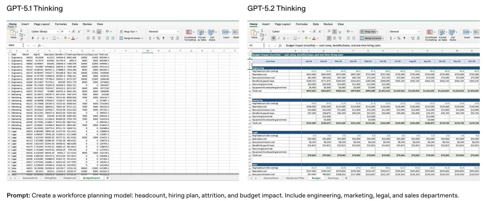 OpenAI给出的官方文档明确指出,GPT-5.2 的设计初衷在于“创造更大的经济价值”。相较前代,它在电子表格处理、演示文稿制作、代码编写、图像感知、长文本理解及复杂多步项目执行等方面,均实现了全面性能跃升。