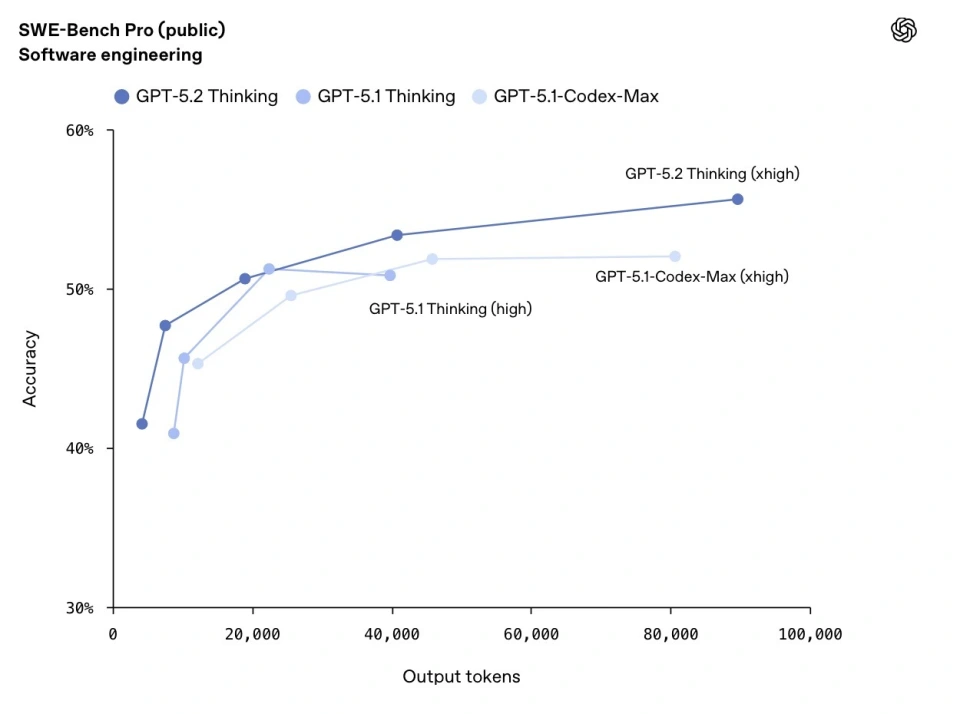 图:GPT-5.2 Thinking在SWE-Bench Pro的跑分