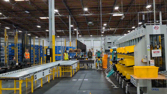 还有在亚马逊仓库「打工」的Digit机器人,可以平稳地搬运周转箱。