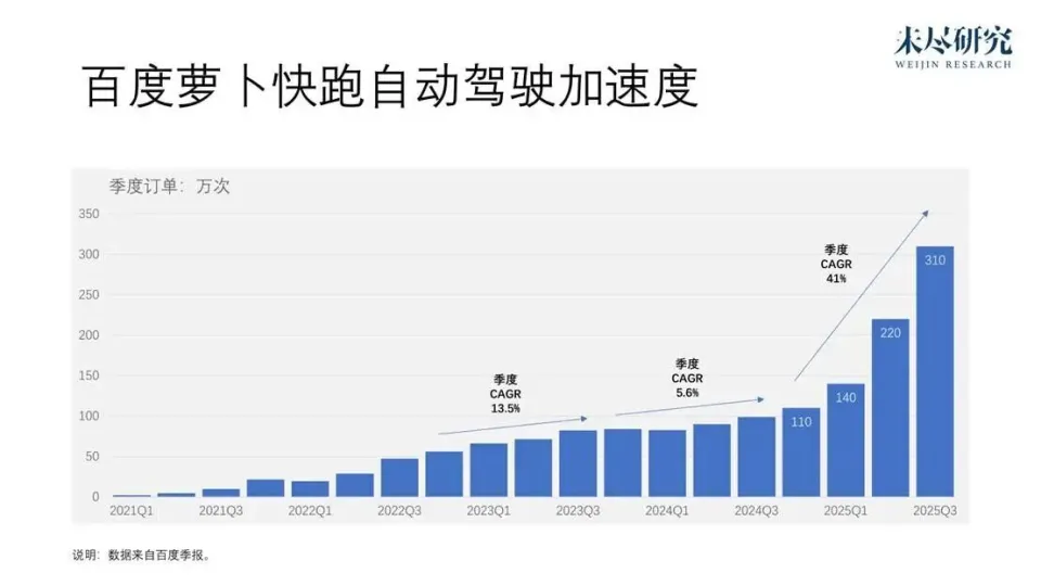 规模扩展的叙事同样发生在美国。Waymo驶入了高速,在旧金山湾区的市场份额超越了Lyft,明年进军包括伦敦在内的12座新城市,并预计于2027年为母公司做出“实质性”财务贡献。这意味着中国与美国的自动驾驶将走出隔空竞争的阶段,在全球展开正面对决。百度将于明年进入欧洲,伦敦将是两家巨头共同的重点市场。