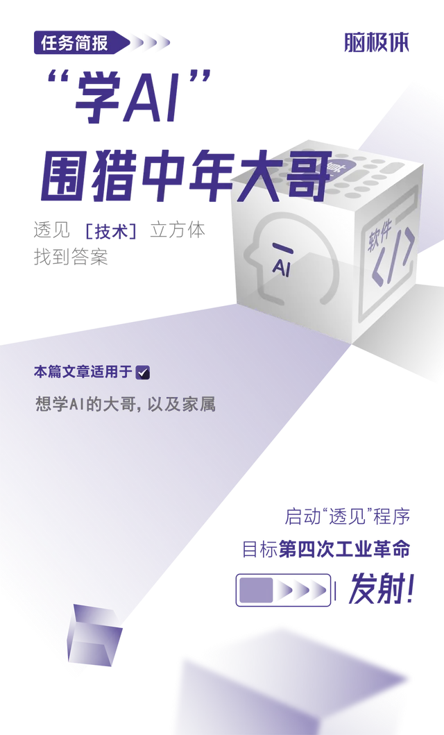 很多中年人开始学AI,都来源于内心要跟上时代的紧迫感。或者换句话说,他们对被时代抛弃有着强烈的恐惧感。他们或许已经进入半退休状态,但还是想要东山再起,或者身处一些传统行业,想要找个兼职,或者试试职业技能的提升。