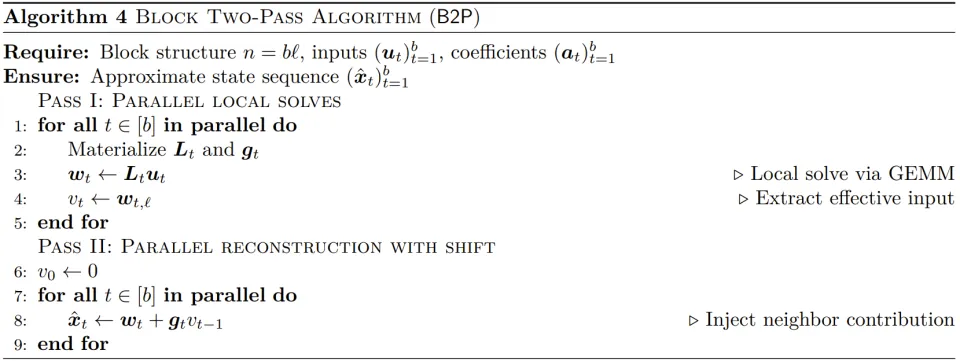 为了将这一理论落地,作者开发了块两步(Block Two-Pass, B2P)算法及其对应的 CUDA 内核。