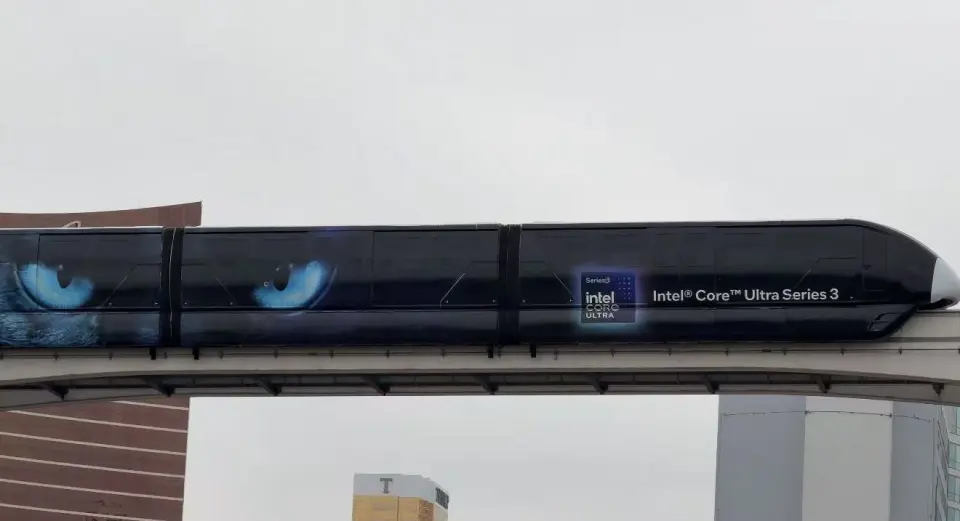参展商们争夺最佳广告位战况焦灼,海信、TCL在展馆门口的大广告牌都很醒目,追觅巧妙地占据了几个入口广告位。英特尔、联想、谷歌Gemini等承包了Sphere地标,英特尔还给轻轨换上了第三代酷睿Ultra的皮肤。