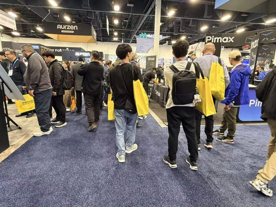 几乎每个AI眼镜和VR设备展位都挤满了体验的观众,有些体验区还排起大长队。