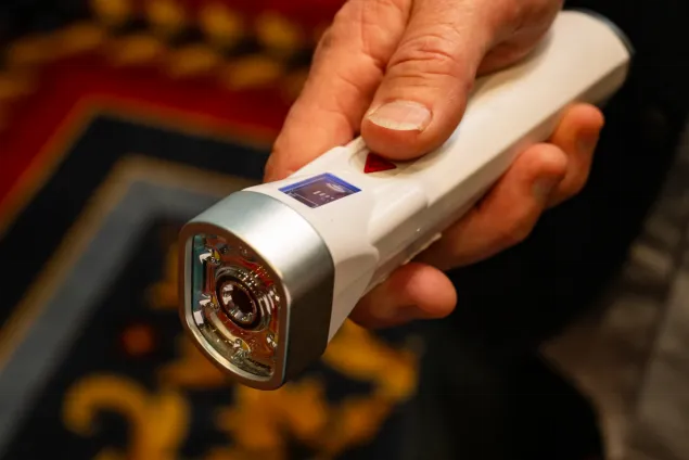 取一点食物样本放入一次性检测袋,插进这个巴掌大的设备,几分钟就能检测是否含有麸质或乳制品。未来还会增加更多过敏原检测。对严重过敏者来说,这可能是一个救命的小工具。