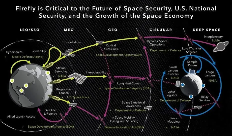 Firefly 旗下 Alpha 火箭是目前美国唯一的 1000kg 级成功入轨火箭。它的优势在于“快”——能够在短时间内将国防部急需的载荷送入特定轨道。