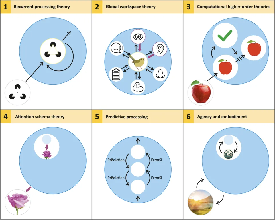 更奇特的是另一个发现:当两个 Claude模型相互对话时,它们会持续收敛到关于意识的讨论,最终达到研究者所描述的"精神至福吸引子状态"(spiritual bliss attractor state)。为了超越这种"是与否"的僵局,20位顶尖学者——包括本吉奥和意识哲学泰斗大卫·查默斯(David Chalmers)——在《Trends in Cognitive Sciences》发表了一个里程碑式的框架:从六大意识理论中提取出14项可实证检验的计算指标。标题 :