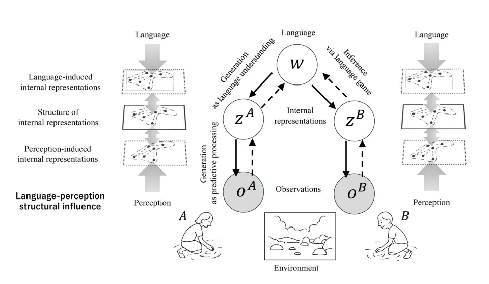 他们提出语言涌现与感质结构之间存在双向因果关系 :(语言、知觉与内部表征之间的双向影响。本图展示了个体内部表征(𝑧)的结构如何同时受到来自环境的知觉观察(𝑜)的自下而上加工以及来自语言的自上而下约束的塑造(分别在左侧和右侧概念性示意)。与此同时,中央部分展示的语言涌现过程描绘了多个主体(A、B)在观察共享环境时形成的内部表征(𝑧𝐴、𝑧𝐵)如何通过交流互动(如语言游戏)促进共享语言系统(𝑤)的涌现。这一涌现的语言系统(𝑤)随后作为先验,施加向下约束,影响个体表征(𝑧𝐴、𝑧𝐵),并可促进主体间表征的趋同)神经影像研究证明:语言类别可在100毫秒内影响视觉皮层V2/V3的激活模式 ——远早于任何有意识的认知加工。希腊语区分浅蓝(ghalazio)和深蓝(ble),希腊人的大脑在前注意阶段就能比英语使用者更快地区分这两种蓝色。语言,远不只是交流工具。它是校准主观体验的隐形力量 ,更是让体验可被共享的桥梁 。斯坦福大学威利特团队首次实现了对"内语言"(inner speech)的实时神经解码。四名瘫痪患者大脑运动皮层植入微电极阵列后,研究者发现内心默念时的神经活动模式与尝试实际说话高度相似——只是信号更弱。标题: