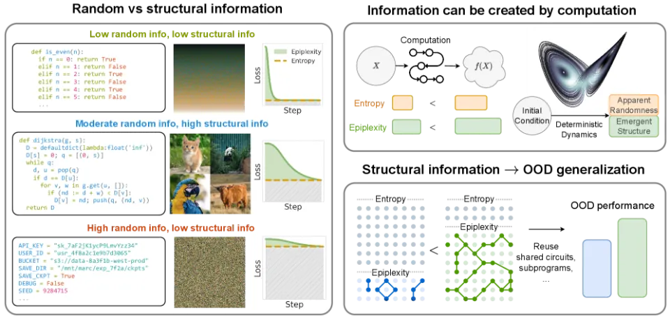这篇论文的核心论点是:我们长期以来用于衡量信息的经典工具香农熵(Shannon entropy)和柯尔莫哥洛夫复杂度(Kolmogorov complexity)在面对现代机器学习时表现得捉襟见肘。这些框架隐含地假设观察者拥有无限的计算能力,但现实中的学习系统,无论是人脑还是 GPU 集群,都在有限的计算预算下运作。当我们忽视这一点时,理论与实践之间就会出现令人困惑的裂痕。