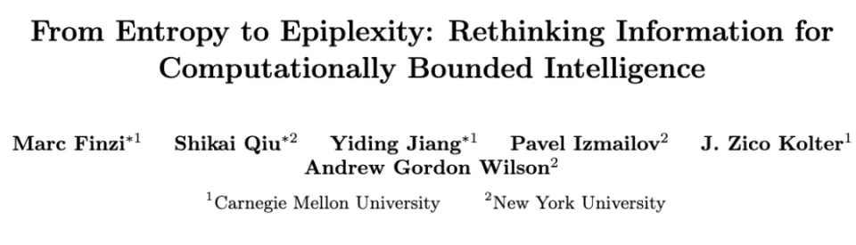 2026 年 1 月初,来自美国卡内基梅隆大学和纽约大学的联合团队发布了一篇题为《从熵到上褶度:为计算受限智能重新思考信息》(From Entropy to Epiplexity: Rethinking Information for Computationally Bounded Intelligence)的论文,团队耗时两年进行研究,提出了一个名为“epiplexity”(上褶度,或可译为“认知复杂度”,epi 表“上层”,plexity 与 complex/perplexity 同源,指向“复杂性”)的新概念,试图从根本上回答这个问题,论文发布后迅速在设计媒体上引发了讨论。
