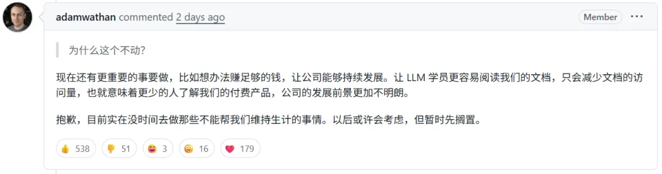 最终,为了生存,他拒绝了那个让 AI 更方便「白嫖」知识的请求,关闭了这个 Pull Request。