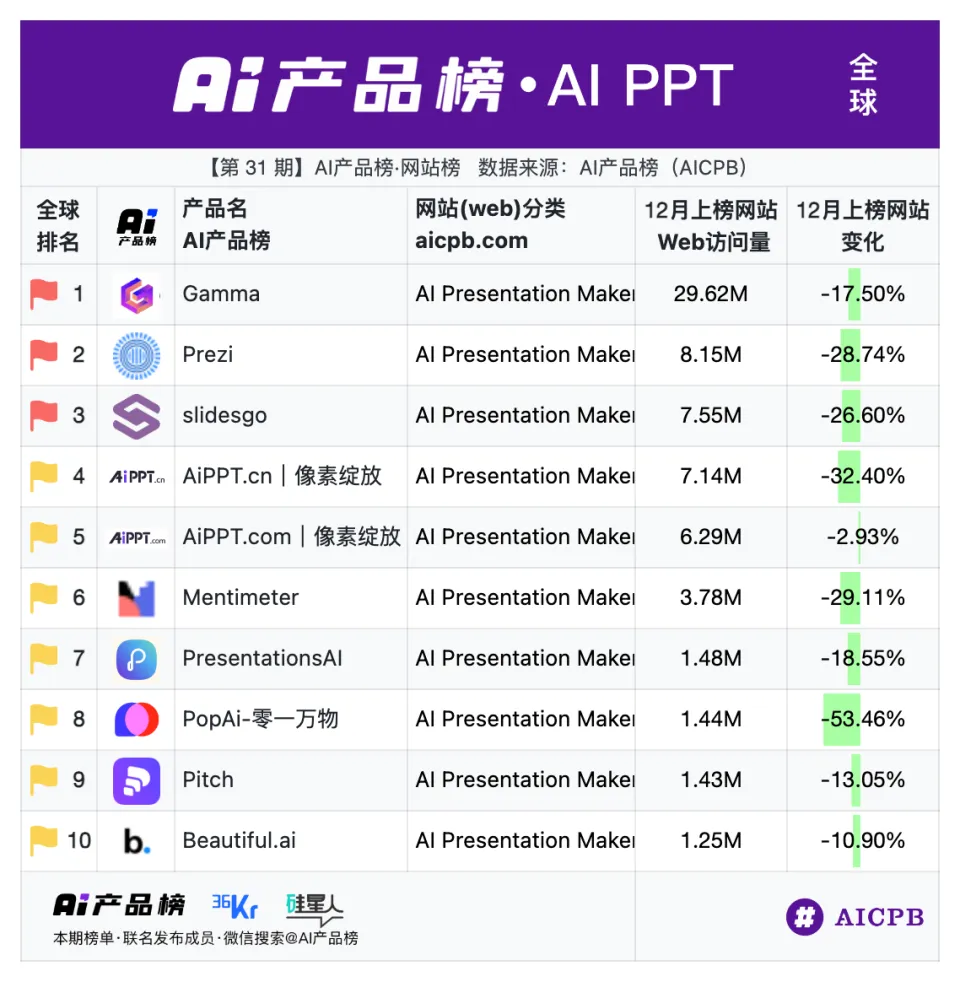 | | 全球·增速/降速榜 | | 全球AiPPT工具 |