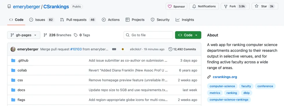 简单来说,CSRankings只看一件事:全球各大高校/科研机构,在计算机领域顶会上的发表的论文数量。