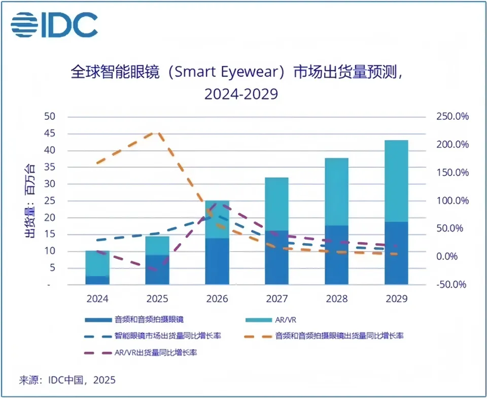 IDC数据显示,2026年全球智能眼镜出货量预计将达1451.8万台,其中中国市场增速有望超过121%。行业的热情、资本的投入与技术的储备,均已就位。