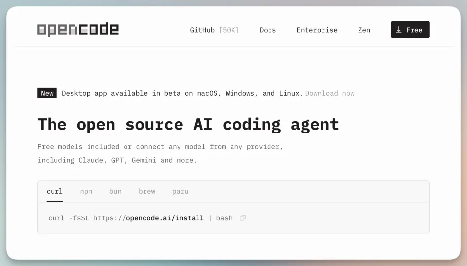OpenCode不仅开源,提供免费模型,授权登录用付费模型。
