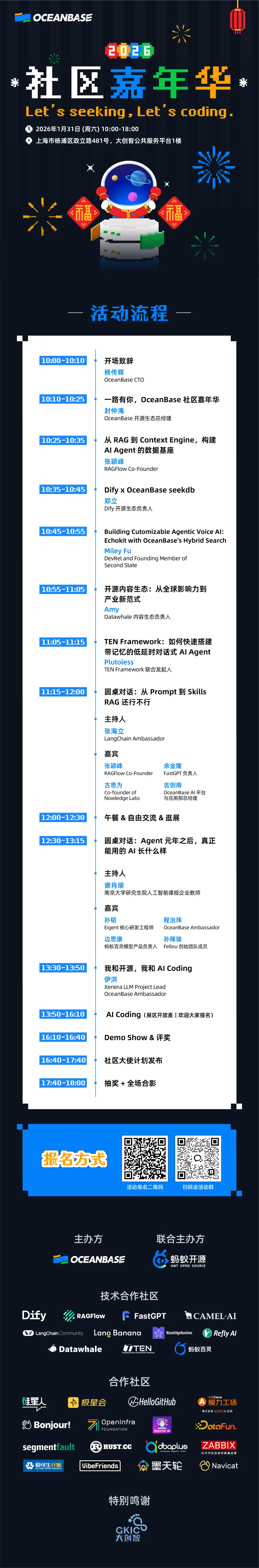 模力工场将亮相 OceanBase 社区嘉年华!诚邀您加入我们的上海现场展位。作为 OceanBase 合作的创新社区,模力工场将于 1 月 31 日 登陆上海社区嘉年华,并拥有专属展位。这不仅是一次技术交流——我们更希望和你一起,在现场用 AI Coding 展现创造力、在开放麦分享你的项目故事、与行业先锋面对面切磋、在开源市集交换灵感。我们为你预留了专属席位,期待与你共同呈现:当开源精神遇上 AI 创造力,能碰撞出多少令人惊艳的可能。立即报名,锁定与数百位技术同行深度连接的一天!