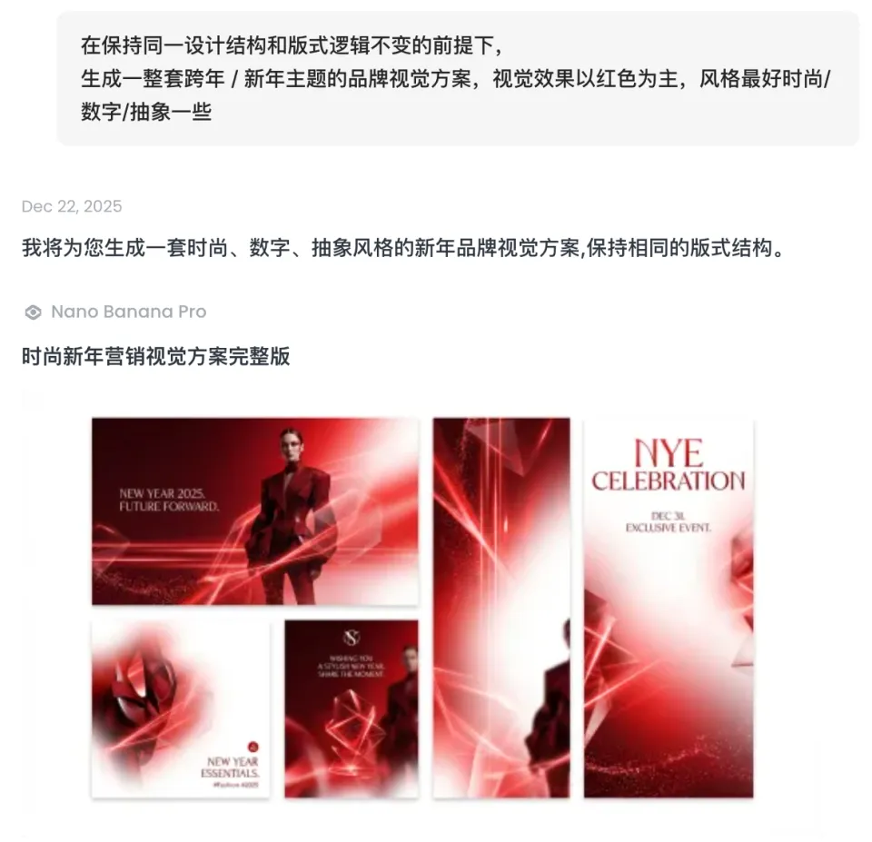 这种成套输出带来的变化,在实际项目里非常直观。每一张图该怎么用、会出现在哪里,不需要再事后补想象。不管是圣诞、跨年还是新年,不同主题下沿用的是同一套设计骨架,修改和调整都发生在同一个结果之上。